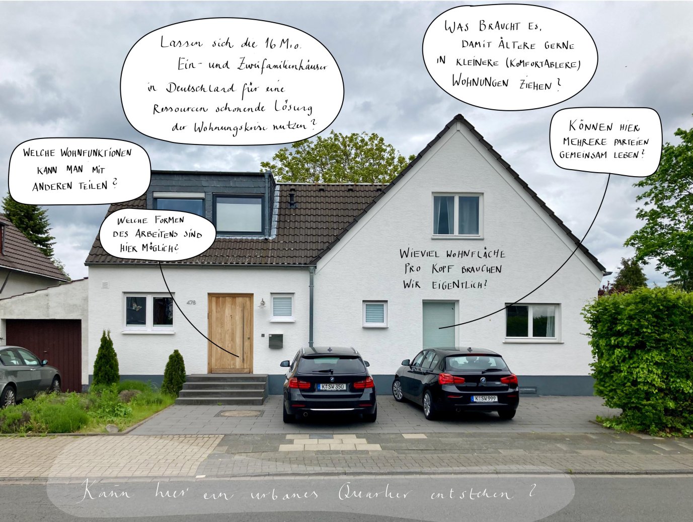 47,1m² Wohnfläche haben wir in Deutschland pro Kopf durchschnittlich zur Verfügung. Gleichzeitig erleben wir eine Wohnraumknappheit, denn der Wohnraum ist nicht gleichmäßig verteilt. Schaut man sich Wohnbiografien an, stellt man fest, dass nicht nur Eigentümer*innen mehr Wohnraum haben als Mieter*innen, sondern vor allem mit dem Lebensalter der Wohnraum pro Kopf ansteigt - demographisch also mit einem weiteren Anstieg der Wohnfläche pro Kopf zu rechnen ist. Aus ökologischer Sicht ist das problematisch, denn der Bau und Betrieb von Gebäuden verbraucht große Mengen an Rohstoffen und Energie.Enorme Potentiale liegen in den bundesweit 16,1 Mio. Ein- und Zweifamilienhäusern. Ein Großteil von ihnen wird nur noch von 1-2 Personen bewohnt, meist Ältere in der Nachfamilienphase, von denen sich wiederum viele andere Wohnmöglichkeiten wünschen: in Gemeinschaft, mit weniger Aufwand für die Instandhaltung, barrierefrei. Der Bestand ist aber angesichts der Eigentümer*innenstruktur und der baulichen Vielfalt planerisch und architektonisch nicht leicht zu erschließen. Begleitend zum laufenden Forschungsprojekt zu Nachverdichtung im Gebäudebestand untersuchen wir in einer Serie von Lehrveranstaltungen in enger Zusammenarbeit mit den Eigentümer*innen, wie die Transformation von Einfamilienhäusern aussehen und organisiert werden kann.In Göttingen entsteht dazu derzeit eine Ausstellung in Zusammenarbeit mit der städtischen Wohnraumagentur.
