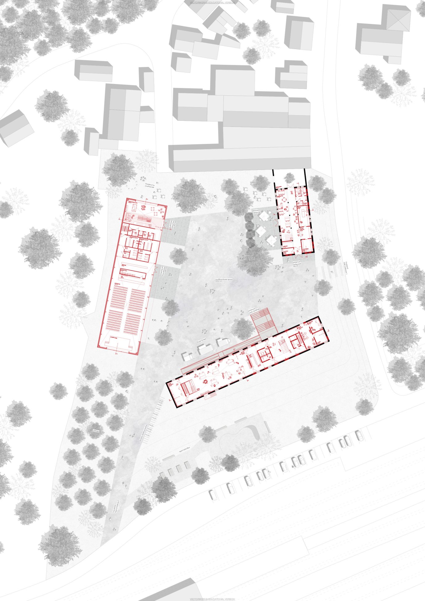 Die ehemalige „Zichorienfabrik Günzburg“ wird zu einem modernen Kultur- und Begegnungszentrum umgestaltet, das Räume für Veranstaltungen, Jugendangebote, eine Musikschule und ein Restaurant bietet. Der Entwurf ergänzt die historische Bausubstanz mit neuen Elementen und schafft einen zentralen Innenhof als Ort für Märkte, Freizeit und Gemeinschaft.