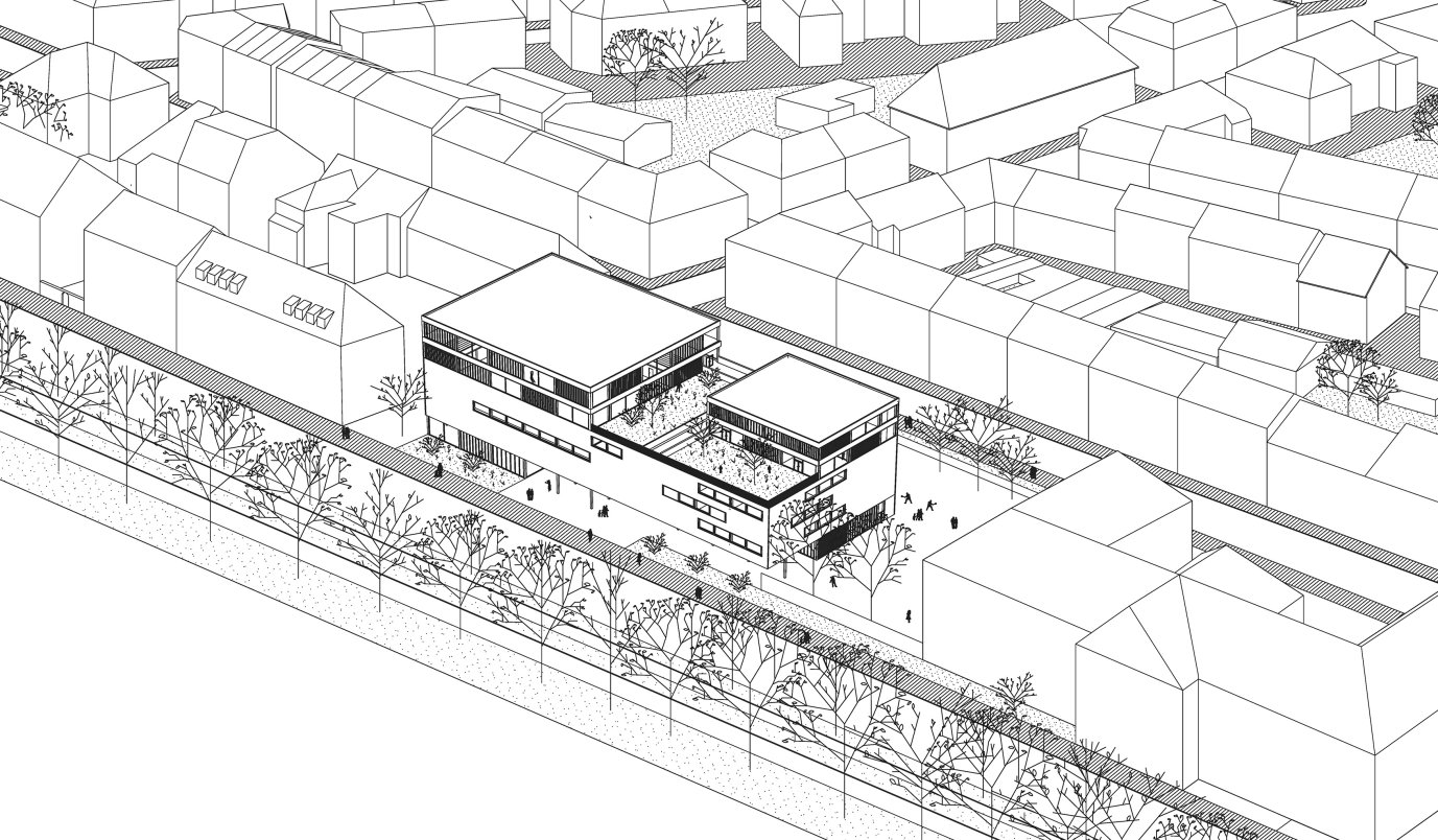 Zwei große städtische Grundstücke in München direkt an der Isar-Tangente, angrenzende an die Wittelsbacherschule werden mit einem neuen urbanen Multi-Use-Sport-/ Schul-und Kinderzentrum bebaut. Das Zentrum soll durch Kinder/ Schüler, Vereine aber auch die Bewohner des angrenzdenden Viertel und der näheren Umgebung genutzt werden können. Gleichzeitig soll die Rolle der entstehenden Außenräume für das Glockenbachviertel mit bedacht werden. Funktionale Kernelemente sind eine Schwimmhalle, eine Einfach- oder Zweifach-Sporthalle, ein Kindergarten sowie Erweiterungsräume für die Schule.